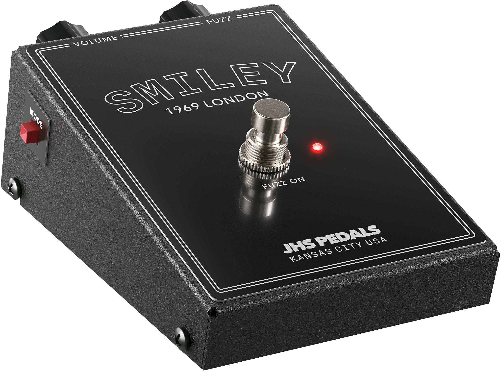 En 1966, un vendeur du nom de Ivor Arbiter vit la scène florissante anglaise en demande de fuzz. Il décida de faire entrer sa société Arbiter Electronics dans l’industrie des produits guitare et de sortir sa propre version de ce nouveau son à la mode. Après avoir vu la base circulaire d’un pied de micro, il eut l’idée de mettre l’effet dans un boîtier similaire et de lui donner l’apparence d’une tête avec 2 réglages pour les yeux, un footswitch pour le nez et le nom de la marque en guise de bouche. Ainsi naquit la Fuzz Face. La même année, un guitariste américain appelé Jimi Hendrix arriva à Londres et adopta la pédale d’Ivor comme son effet de prédilection et le reste fit partie de l’histoire. Les premières Fuzz Face furent fabriquées avec des transistors au germanium mais en 1969, le germanium fit place au silicium et Arbiter n’en changea plus. Hendrix lui-même préférait les versions au silicium à cause de leur son, leur agressivité et leur stabilité dans des environnements où le germanium était instable. La Smiley de JHS est une recréation fidèle de ces superbes premières Fuzz Face au silicium. Plusieurs pédales vintage de Josh Scott ont été analysées pour être sûr de capturer à la perfection la magie de cette époque. La Smiley est claire et définie, à cheval entre la distorsion et le sustain brûlant, entre les graves avec sustain et les médiums craquantes fidèles aux pédales vintage d’Arbiter. L’une des caractéristiques les plus appréciées d’une bonne Fuzz Face est sa capacité à s’éclaircir en baissant le volume de la guitare, et la Smiley fait cela sans effort. Le réglage Fuzz contrôle la saturation pour avoir plus de fuzz. Sur le côté se trouve un bouton Mode qui donne accès à un mode JHS avec plus de gain et de réduction de bruit dont vous ne voudrez plus revenir ! Si vous cherchez une fuzz capable de couvrir tous les sons classiques, ne cherchez plus. Les légendes comme Jimi Hendrix, Jack White, Eric Clapton, David Gilmour et Eric Johnson ont utilisé ce circuit dans de nombreux albums. Maintenant, c’est votre tour !