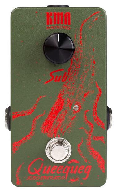 shakingly awesome tones can find their way to any setup out there. With its one knob SUB control, you are able to dial in the right blend of the generated suboctave and your clean signal. Queequeq’s quick tracking benefits from the all-analog circuit design, giving you a very organic and smooth suboctave sound. Thickening up your tone slightly, blasting out faux bass-synth resonances or even filling in for a missing bass sound are just some of Queequeg’s specialties. The SUB control goes from completely clean on the left, to 100% suboctave action on the right side and with different sonic blends in between. Your search for an easy to set and great-sounding all analog sub octaver ends right here with the Queequeg.
